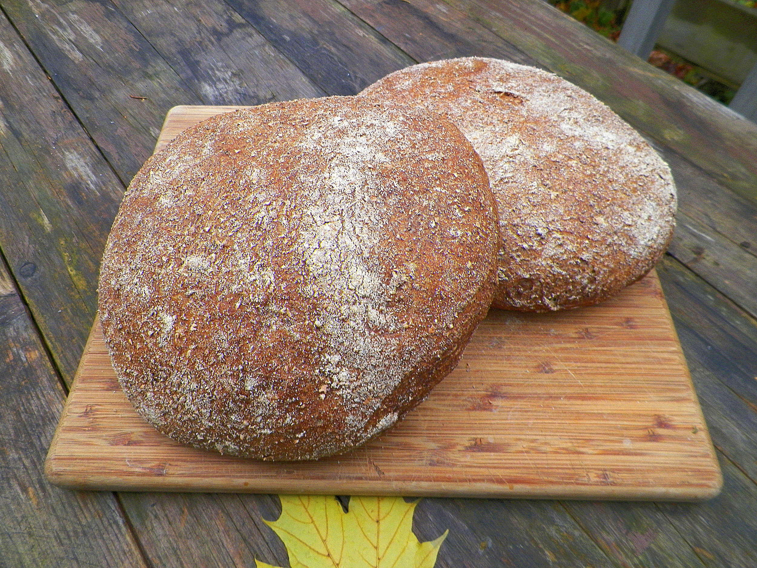 I ended up with 4 large jars of fine quality acorn flour, storing it in the freezer until ready to use. Acorns can become stale, like any nut, and freezing significantly slows that deterioration. We use the flour most often in bread, pancakes and pie crusts, but I've also used it in cookies and donuts, breakfast gruel, dumplings* and as a thickener in soups. The acorn "milk" that comes from the cold leach process, particularly after the first day or two of leaching, can also be used as a liquid ingredient in bread-making or anywhere else you might use water as an ingredient. It can also be drunk straight up or with a bit of sweetener such as honey and/or maple syrup. There are nutrients in that milk, why waste them? I'm also planning to be experiment with acorn milk this year in my homebrewing efforts. Acorn Beer sounds like a winner.